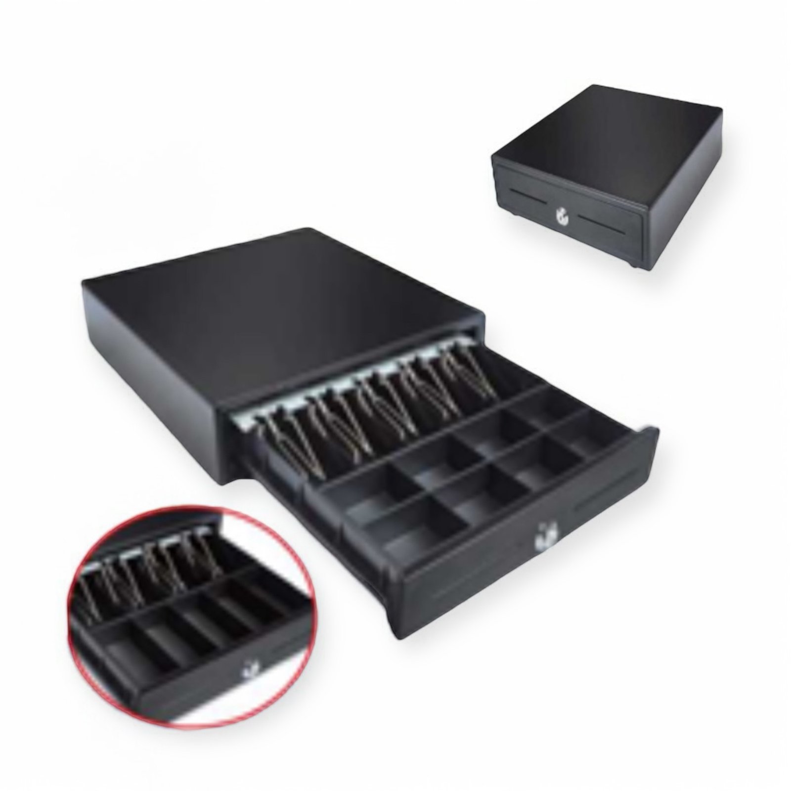En conjunto, estas características hacen del Cajón de Dinero CD350 una solución robusta y eficiente para negocios que buscan optimizar el manejo de efectivo, garantizando tanto organización como seguridad en sus operaciones diarias.